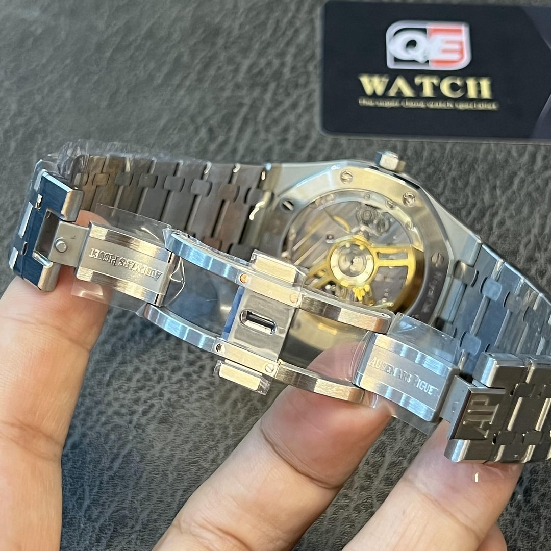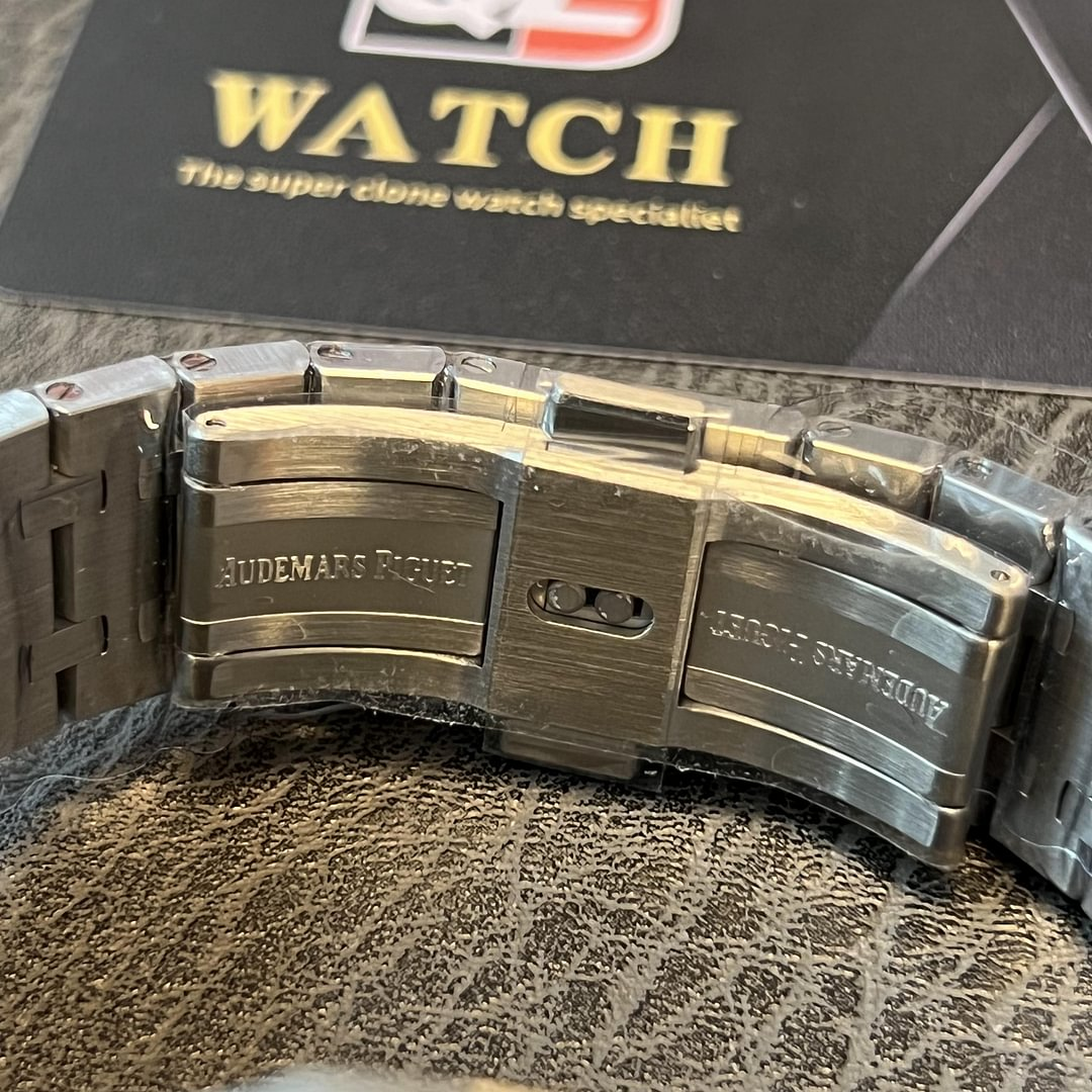 Date display at the 3 o’clock position. Audemars Piguet Calibre 4302 Automatic movement, containing 32 Jewels, bitting at 28800 vph, and has a power reserve of approximately 70 hours. Scratch resistant sapphire crystal.