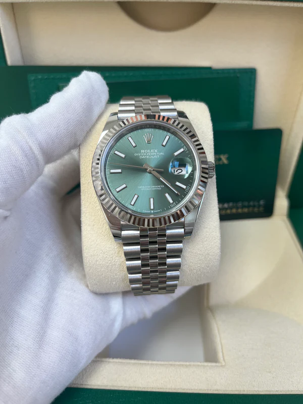 Rolex Datejust 41 Stainless Steel on Jubilee with Mint Green Dial and Fluted Bezel Replica