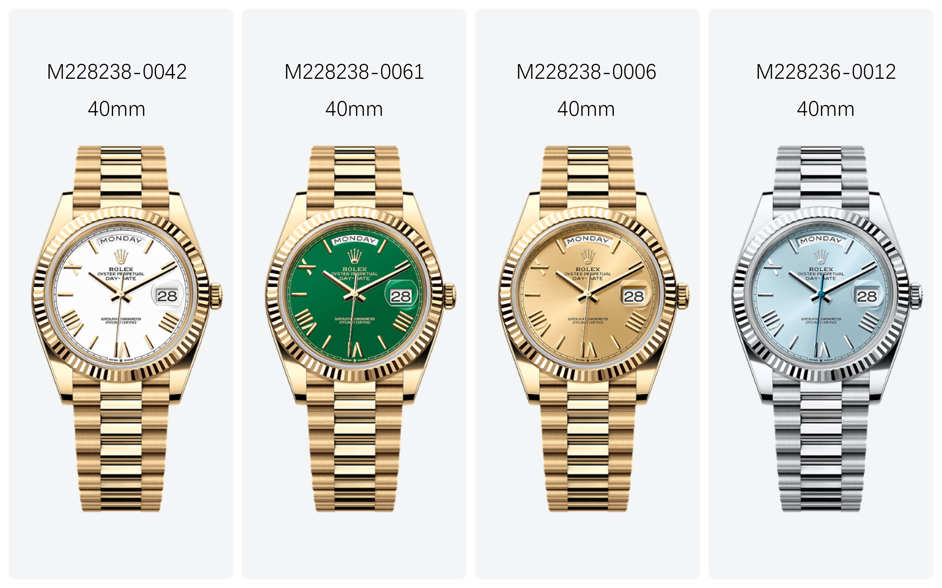 The Rolex fluted bezel is a mark of distinction. Originally, the fluting of the Oyster bezel had a functional purpose: it served to screw the bezel onto the case helping to ensure the waterproofness of the watch. It was therefore identical to the fluting on the case back, which was also screwed onto the case for waterproofness, using specific Rolex tools. Over time, the fluting became an aesthetic element, a genuine Rolex signature feature. Today the fluted bezel is a mark of distinction, in gold on this Day-Date 40.