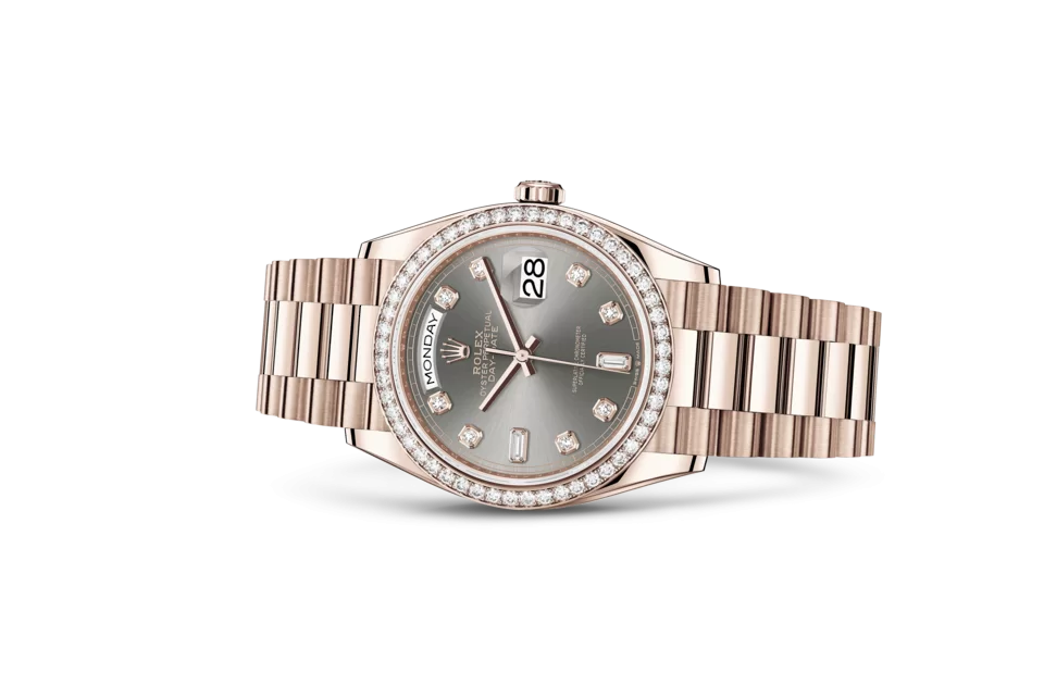 To preserve the beauty of its pink gold watches, Rolex created and patented an exclusive 18 ct pink gold alloy cast in its own foundry: Everose gold. Introduced in 2005, 18 ct Everose is used on all Rolex Oyster models in pink gold.
