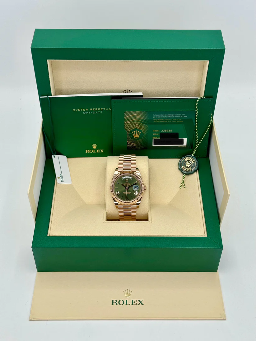 NEW 2024 Rolex Day-Date 40mm 228235 Presidential Rose Gold Olive Dial
