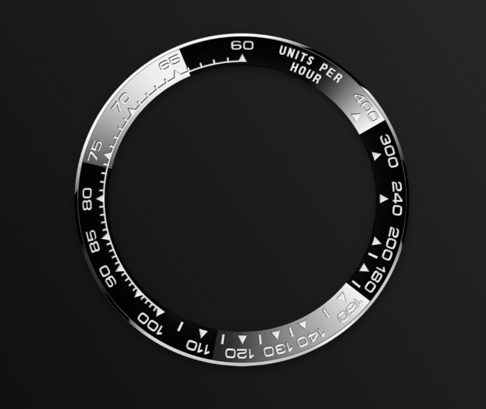 A key part of the model’s identity is the bezel moulded with a tachymetric scale for measuring average speeds of up to 400 miles or kilometres per hour. Blending high technology with sleek aesthetics, the black bezel is reminiscent of the 1965 model that was fitted with a black Plexiglas bezel insert.
