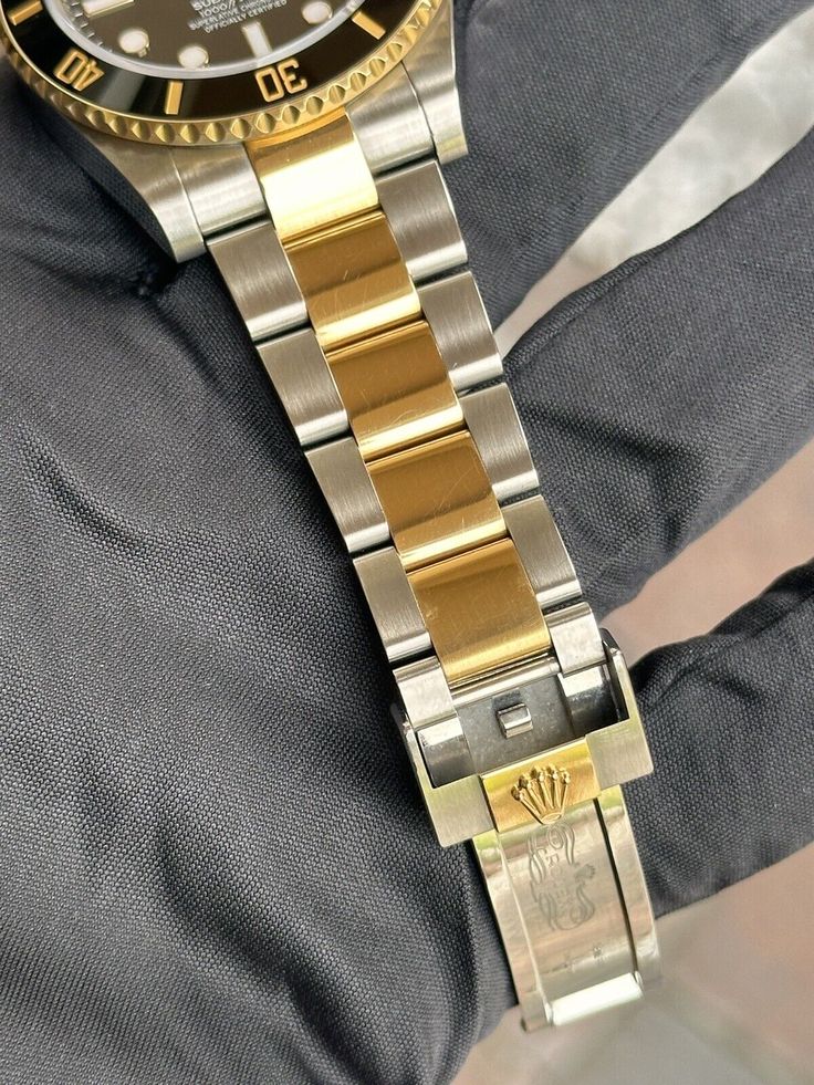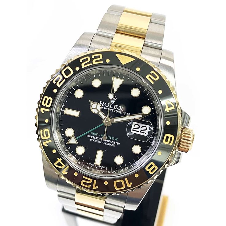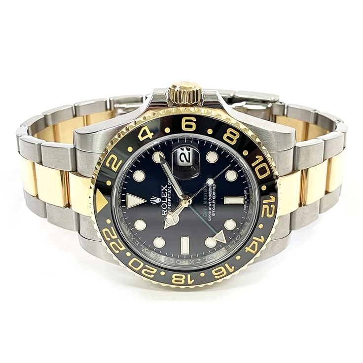 Case: Two-tone stainless steel and yellow gold case with screw-down crown and ceramic bezel. Case diameter: 40mm. Height: 12mm. (904L Stainless Steel)