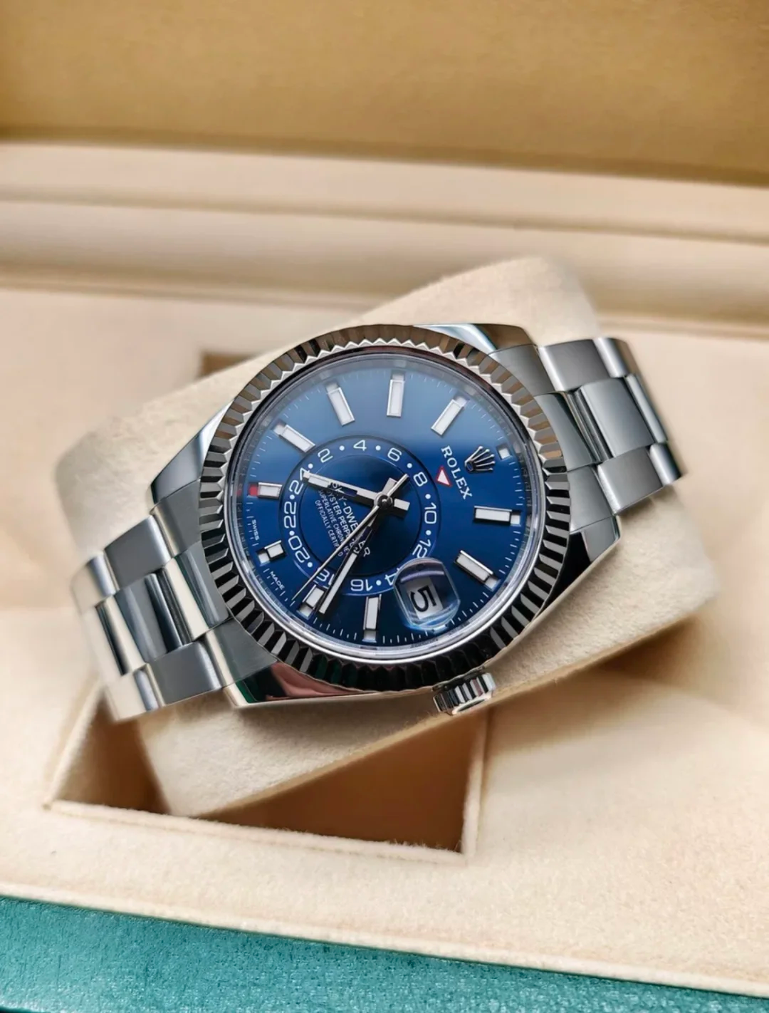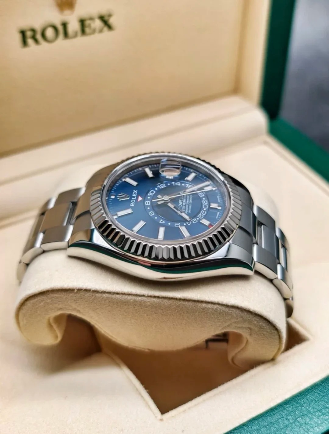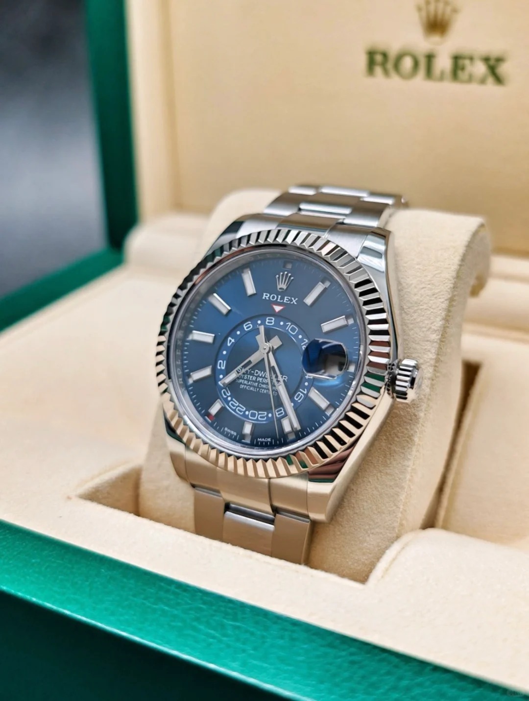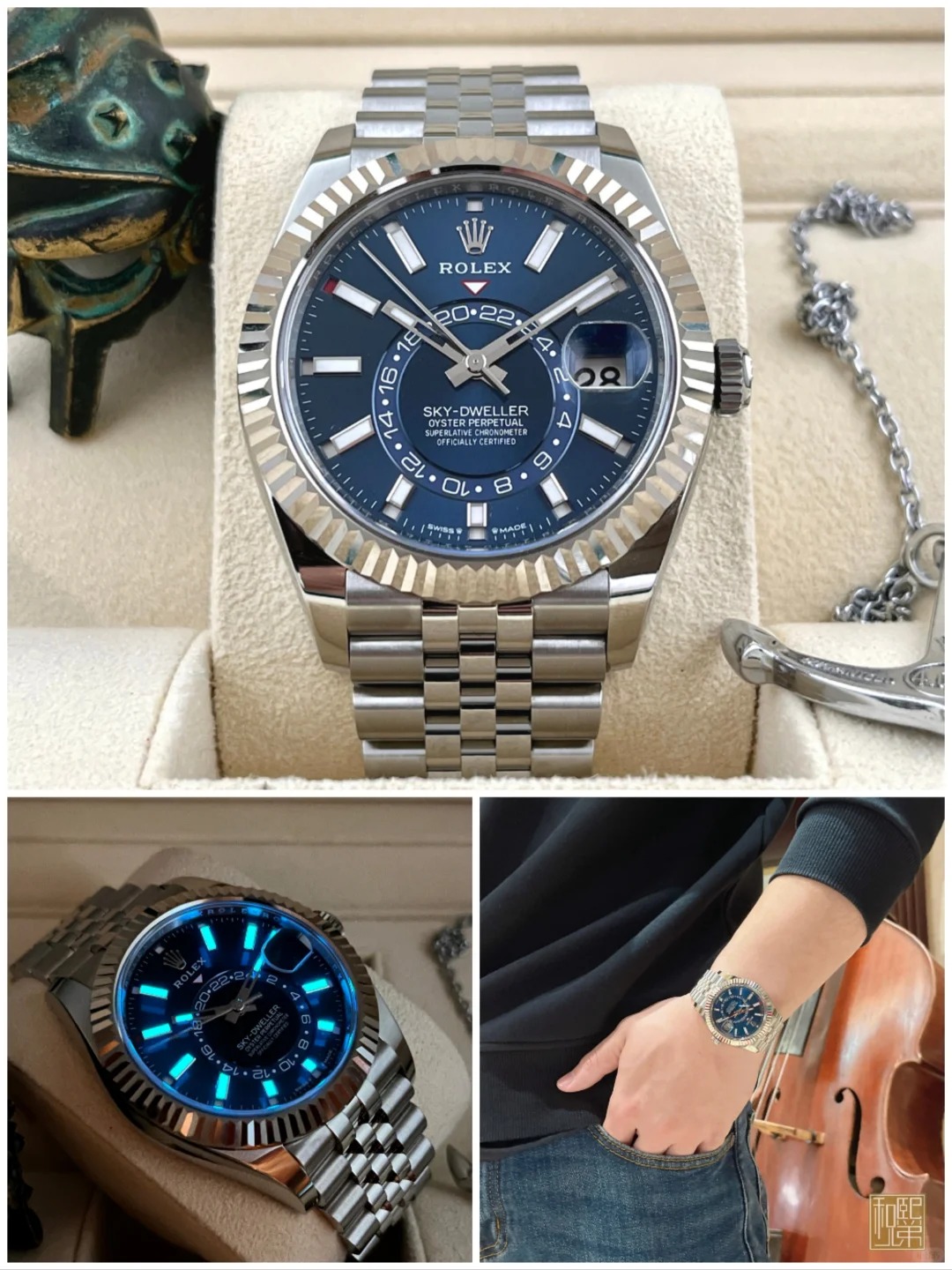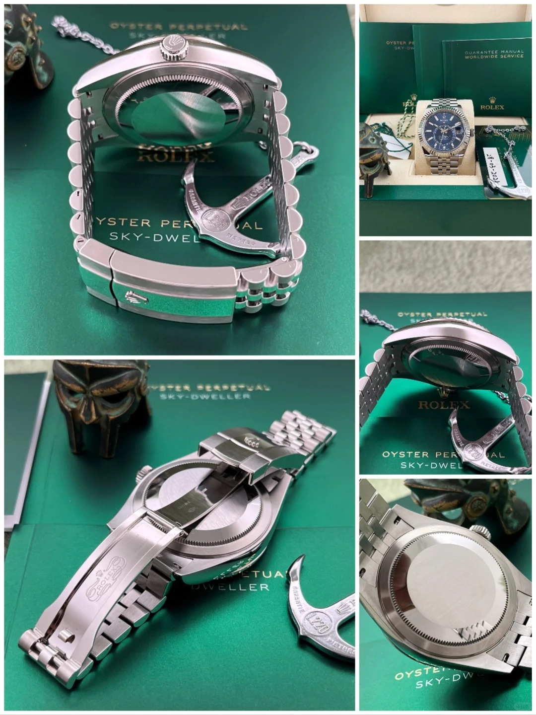 • The Oyster Perpetual Sky-Dweller is available in white gold and Oystersteel with a bright blue dial and a Jubilee bracelet. -m336934-0006 42mm
