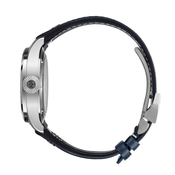 This IWC Big Pilot’s Watch 43mm is a faithful re-interpretation of the original precision instruments from the 1940s. Featuring a blue dial contrasted with rhodium-plated hands on an easily wearable 43mm stainless steel case. The watch is fitted on a matching blue calfskin leather strap, that can be swapped with rubber or stainless steel bracelets thanks to the EasX-CHANGE system. This model is also powered by IWC-manufactured 82100 Calibre, visible through the open sapphire case back and offers a power reserve of 60 hours.