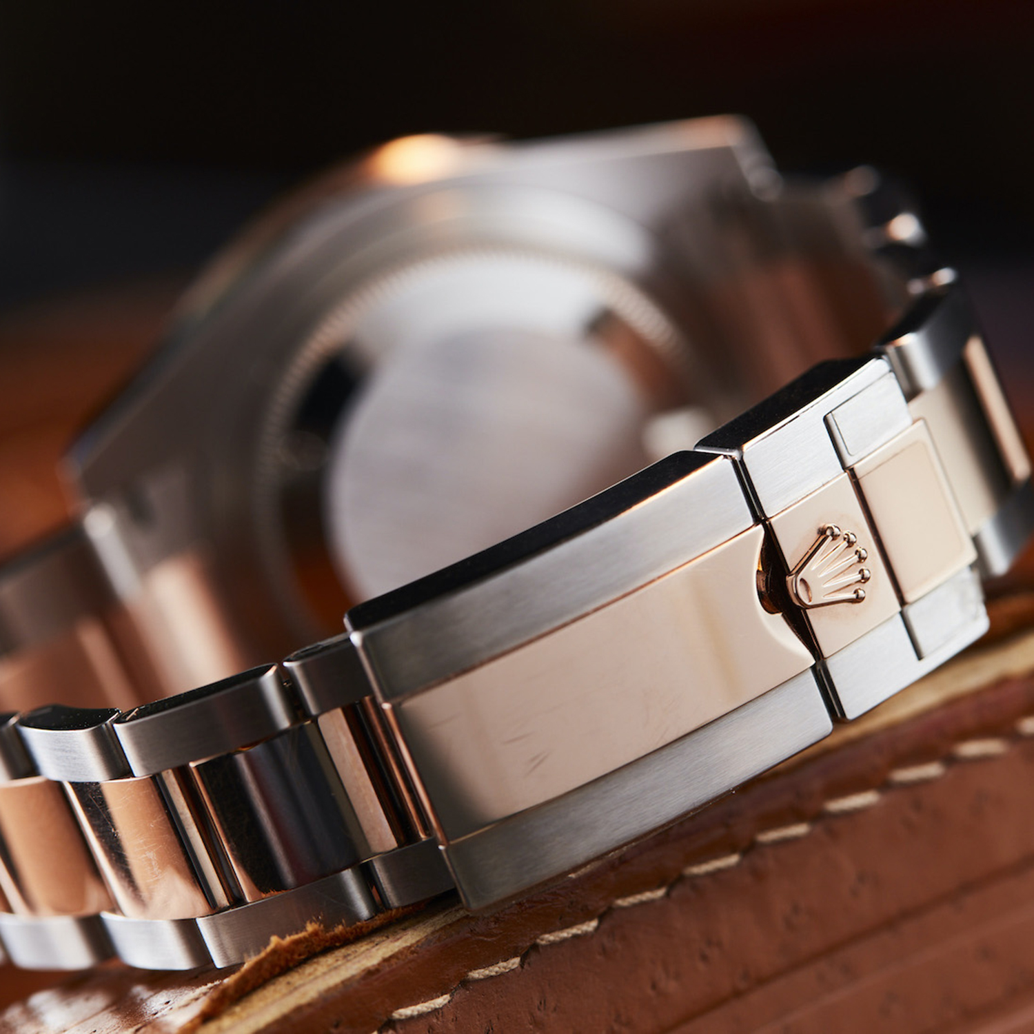 | BRACELET | – Oyster design, flat three-piece links – 2-tone 18k Rose Gold wrapped solid 904L Stainless steel with DLC scratch-protection coating – The 2-Tone models are also available with Solid Gold Parts: 18k Solid Gold Crown, Bezel and Bracelet Middle Links – Solid threaded screws – Folding Oysterlock safety clasp with Easylink 5 mm comfort extension link for quick set |