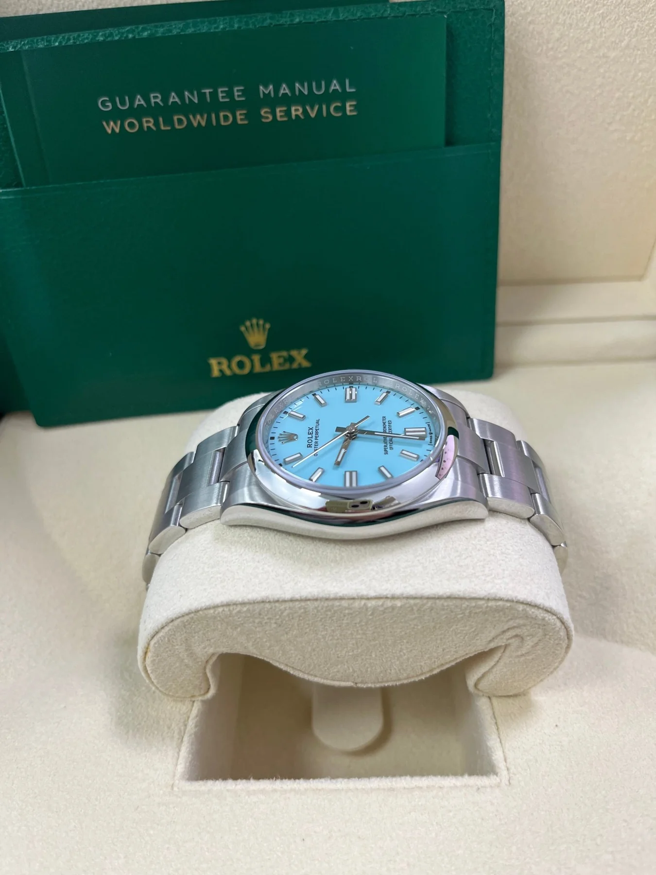Dial: "Tiffany blue" turquoise gloss dial.