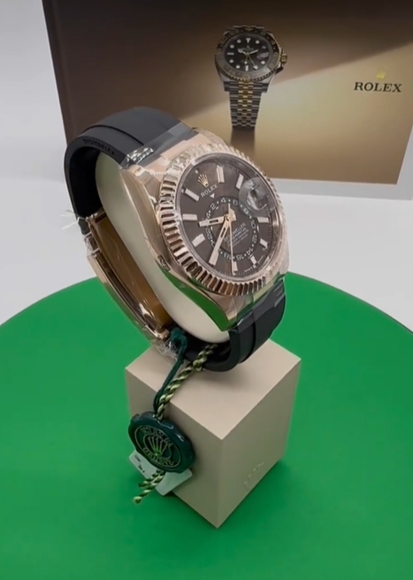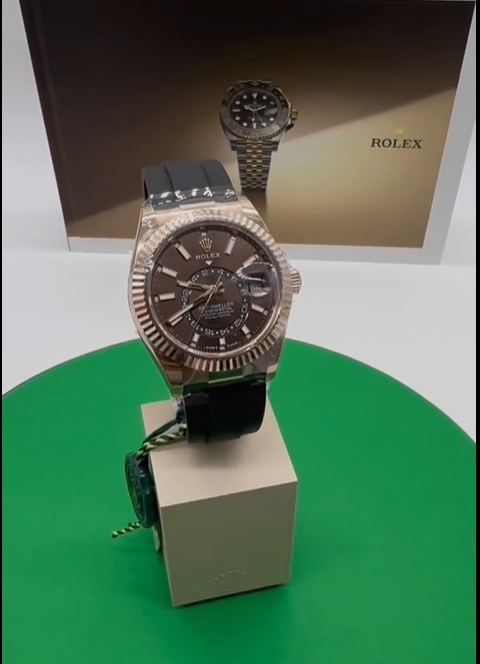 • The Oyster Perpetual Sky-Dweller in 18-carat Everose gold with a chocolate-coloured dial and an Oysterflex bracelet. -m336235-0002 42mm